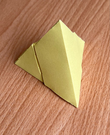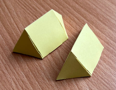 Les patrons des deux éléments de ce puzzle sont à télécharger aux formats GeoGebra, PDF, SVG et Silhouette. Ils sont à l’échelle 1, le tétraèdre assemblé a des arêtes de 8 cm.